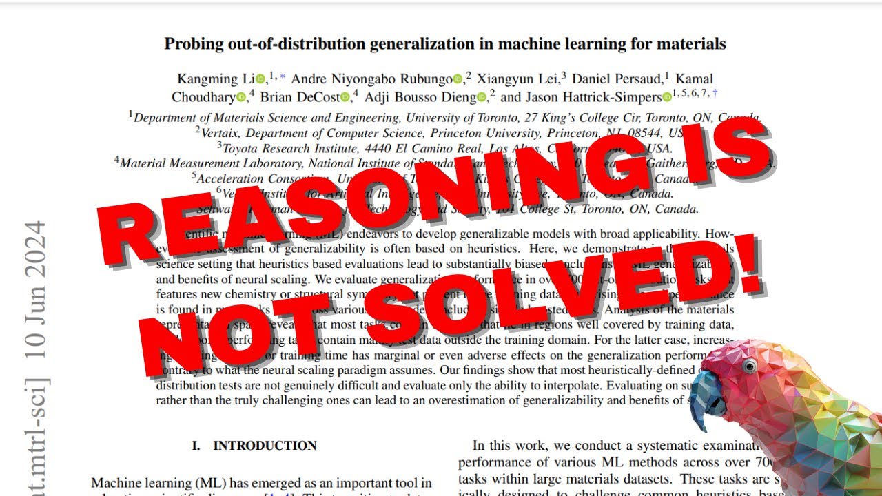 その中で、ある論文が特に私の注目を集めました。というのも、この論文はモデルが分布外に一般化できないことを直接的に示していて、スケーリングしても分布外データへの一般化は改善されへんって主張してるんです。これは大きな問題です。今はスケーリングに全ての期待がかかっているのに、もしスケーリングで分布外の推論が解決できへんのなら、別のアーキテクチャが必要になるかもしれません。そうなると、AIの研究者としての役割は果たせなくなってしまいます。