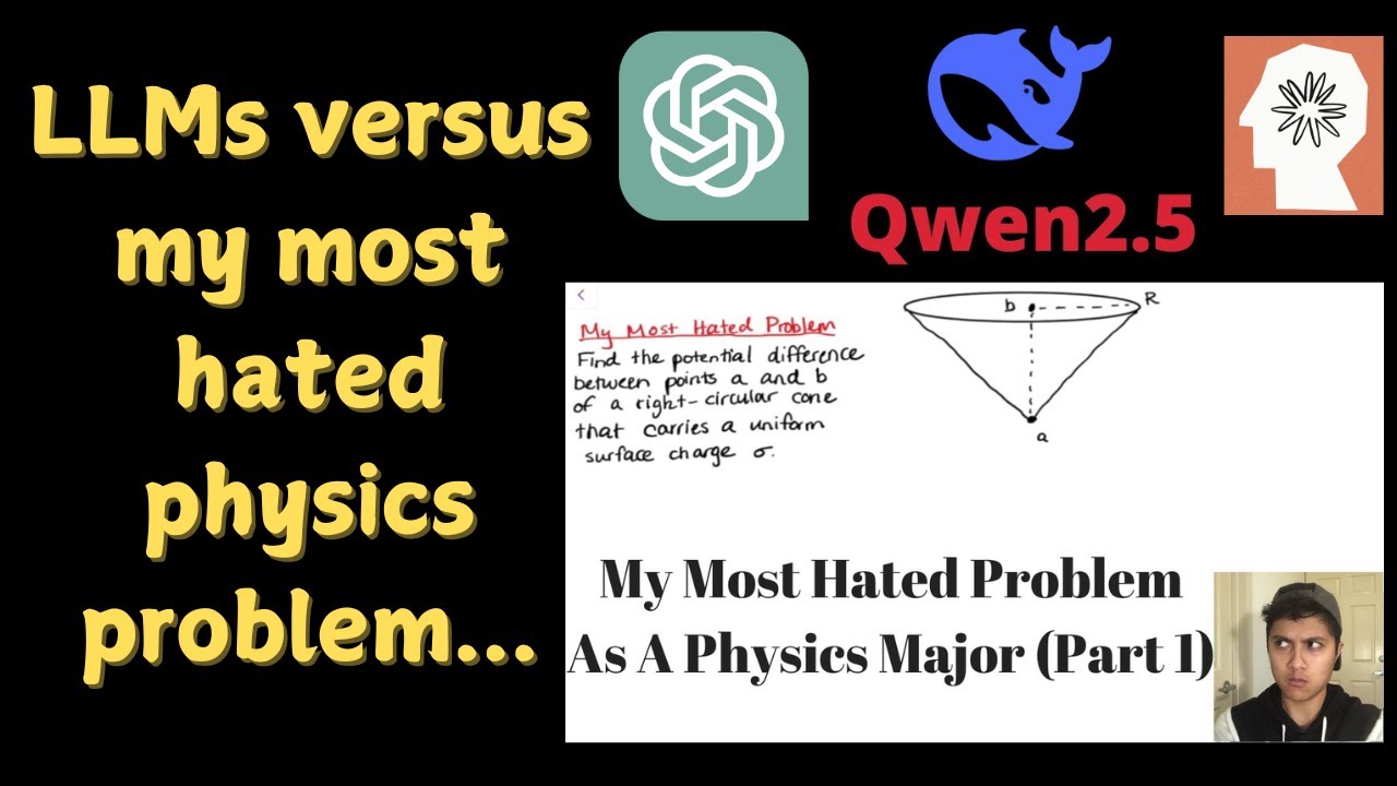 アイスクリームを食べていたとき、このコーンを見て思い出したことがあります。それはグリフィスの電磁気学の教科書にある問題で、帯電した円錐の底部と頂点の間の電位差を計算するものでした。数年前に私のYouTubeチャンネルでこの問題について動画を作りました。この問題はかなり難しかったのですが、答えはインターネット上にあるので、LLMにこの質問をそのまま出すことはできません。そこで、この問題を少し修正することにしました。円錐を使った問題ですが、推論型LLMが私の修正した円錐問題を解けるかどうか確かめてみたいと思います。