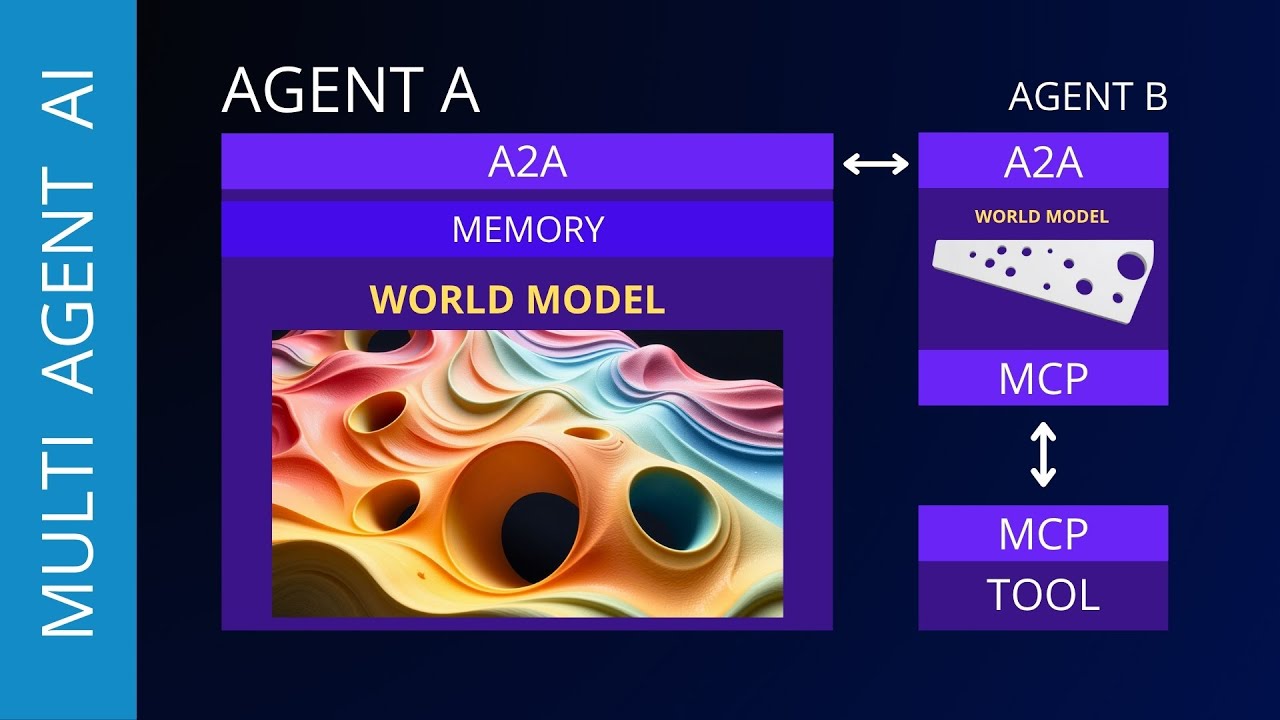ここに私の3つの世界モデルを示します。もちろん、常にエージェント間通信プロトコルがあり、ツールへのエージェントMCPモデルコンテキストプロトコルがあります。
