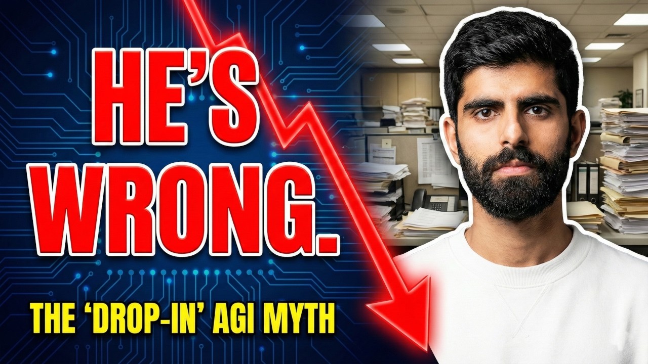 本動画は、ポッドキャスターのドワーケシュ・パテルがイリヤ・サツケヴァーとのインタビュー後に執筆したブログ記事を題材に、なぜAIの進歩が経済に反映されていないように見えるのかという問いに答えるものである。パテルはAGIの到達を二元論的に捉え、AIが人間の代替労働者として機能しないことを技術的停滞と見なしているが、この見方は企業における技術採用の現実を見落としている。実際には、AIの技術的能力は十分に進歩しているものの、企業がそれを導入するためのインフラ、セキュリティ、コンプライアンス、ガバナンスといった「レール」がまだ整備されていない。パテルは研究開発の世界での経験しかなく、大企業での技術導入サイクルの複雑さや組織的慣性を理解していない。歴史的に見ても、クラウドコンピューティングのような成熟した技術ですら、企業が完全に採用するまでに3年から10年を要した。現在のAIエージェントは2025年にようやく実用段階に達したばかりであり、技術的な限界ではなく組織的な摩擦が普及の遅れの真の原因である。